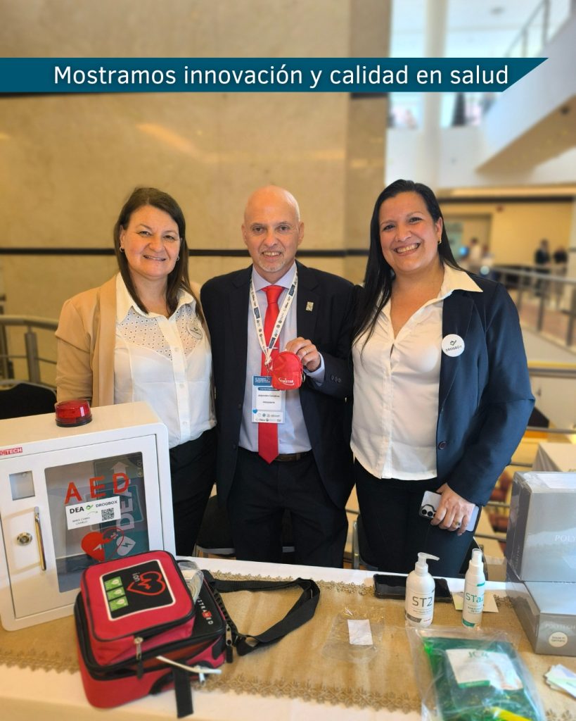 En esta importante cita científica, Drogbox estuvo presente con un stand institucional en el ingreso principal, ofreciendo información y exhibición de productos innovadores de sus representaciones: Alef Medical, COVIDEX y dispositivos de cardioprotección como el Desfibrilador Externo Automático (DEA).